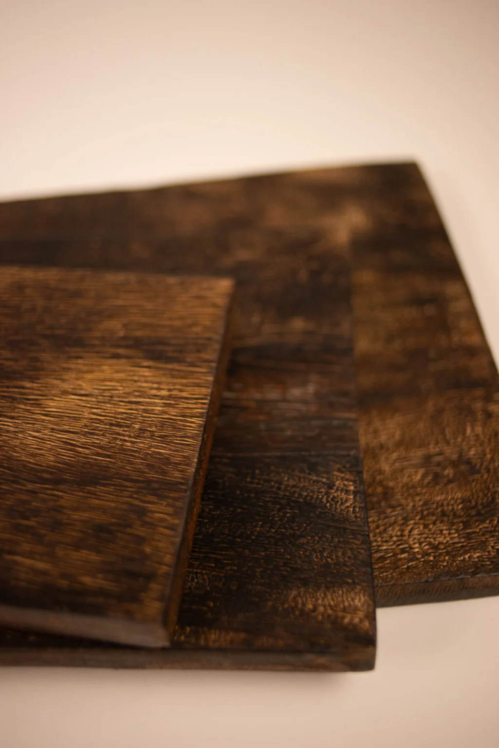 Serveringsbräda i mangoträ med handbränd yta som ger ett rustikt och levande uttryck – ingen bräda är den andra lik. Perfekt för ost, chark eller som ett dekorativt inslag i köket. Träslaget har vackra ådringsmönster med variationer i färg, dessa naturliga mönster gör varje serveringsbräda unik. Finns i 3 storlekar.
