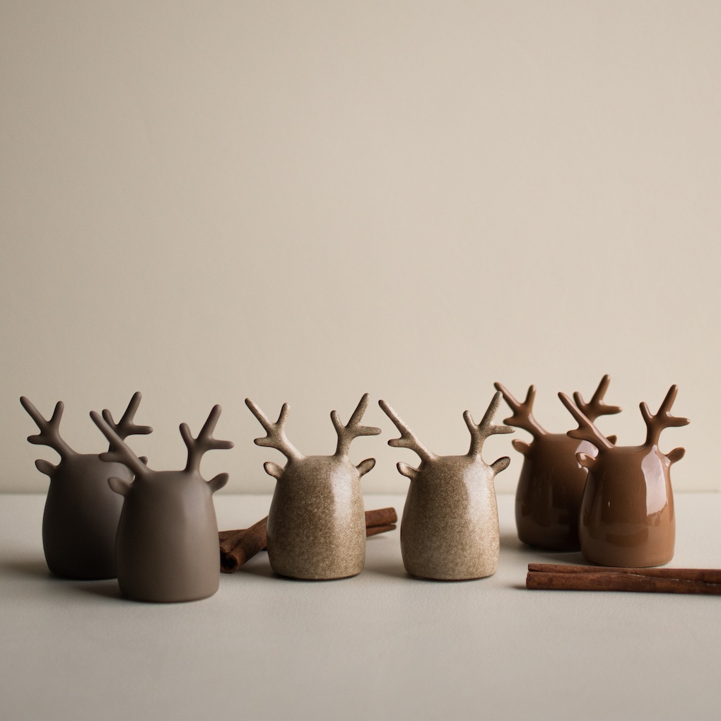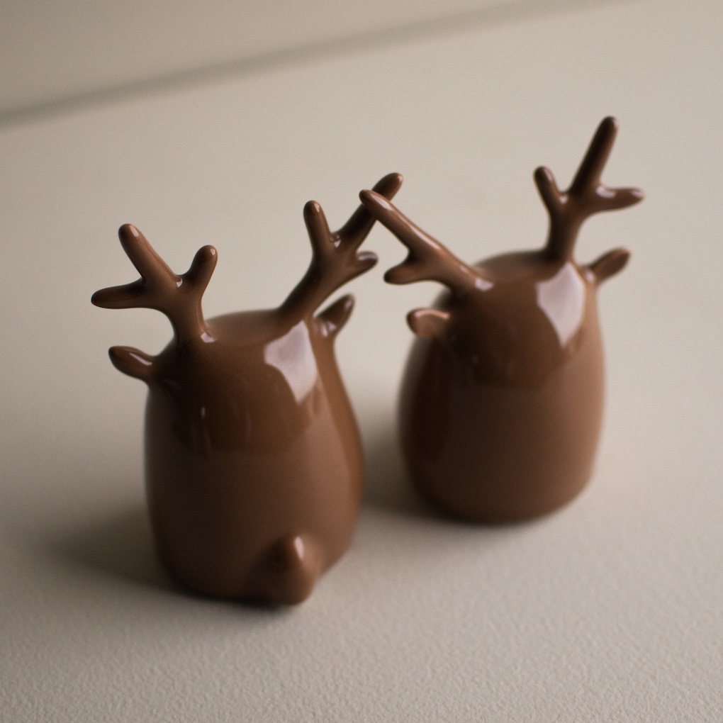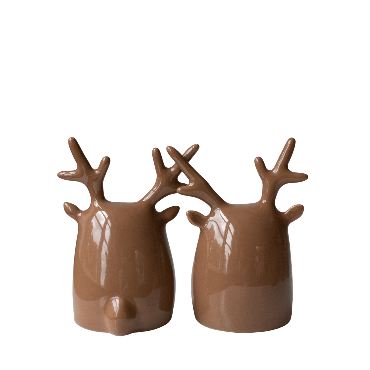 Söta renar i blank nougatfärg. Otroligt dekorativa! Säljs i set om 2.