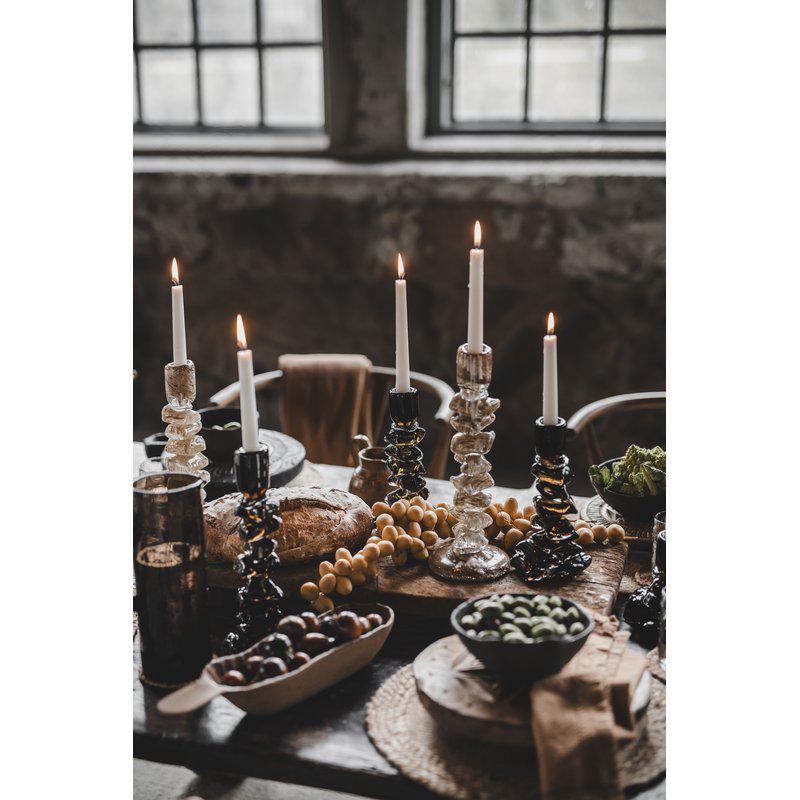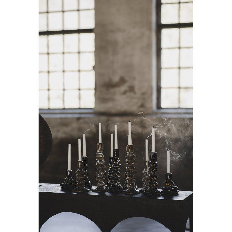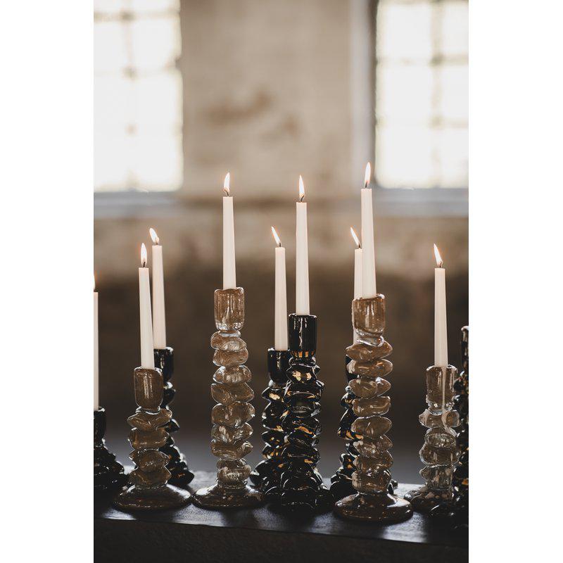 Carmella - en handblåst ljusstake som smälter in och sticker ut! Möt Carmella, ljusstaken som förvandlar ljusets plats till ett konstverk. Med sin chunky form och med sina mjuka, lekfulla siluetter ser Carmella nästan ut som om lena karameller har staplats ovanpå varandra - ett harmoniskt möte mellan skulptur och funktion. Den abstrakta designen gör Carmella till ett uttrycksfullt inslag i rummet, samtidigt som dess rundade former skapar en inbjudande känsla. Den passar lika fint på det dukade bordet som på en hylla där den får stå för sig själv och glänsa. Carmella är mer än en ljusstake - det är ett leende i inredningen. Finns i 2 storlekar.