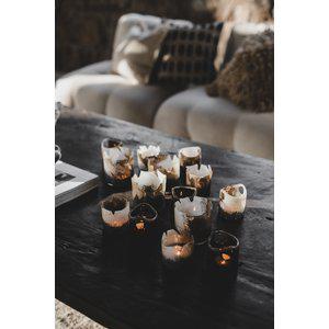 Skapa stämning med Bordo ljuslykta - en handgjord glasdetalj där varje exemplar är unikt. Den levande färgskalan i jordnära brunt, grått och vitt ger ett mjukt sken och en naturlig känsla som lyfter både vardag och fest. Med sin organiska form och kantiga topp blir Bordo lika mycket en dekorativ inredningsdetalj som en mysig ljuskälla. Perfekt att placera på soffbordet, i fönstret eller som en del av en vacker dukning.
