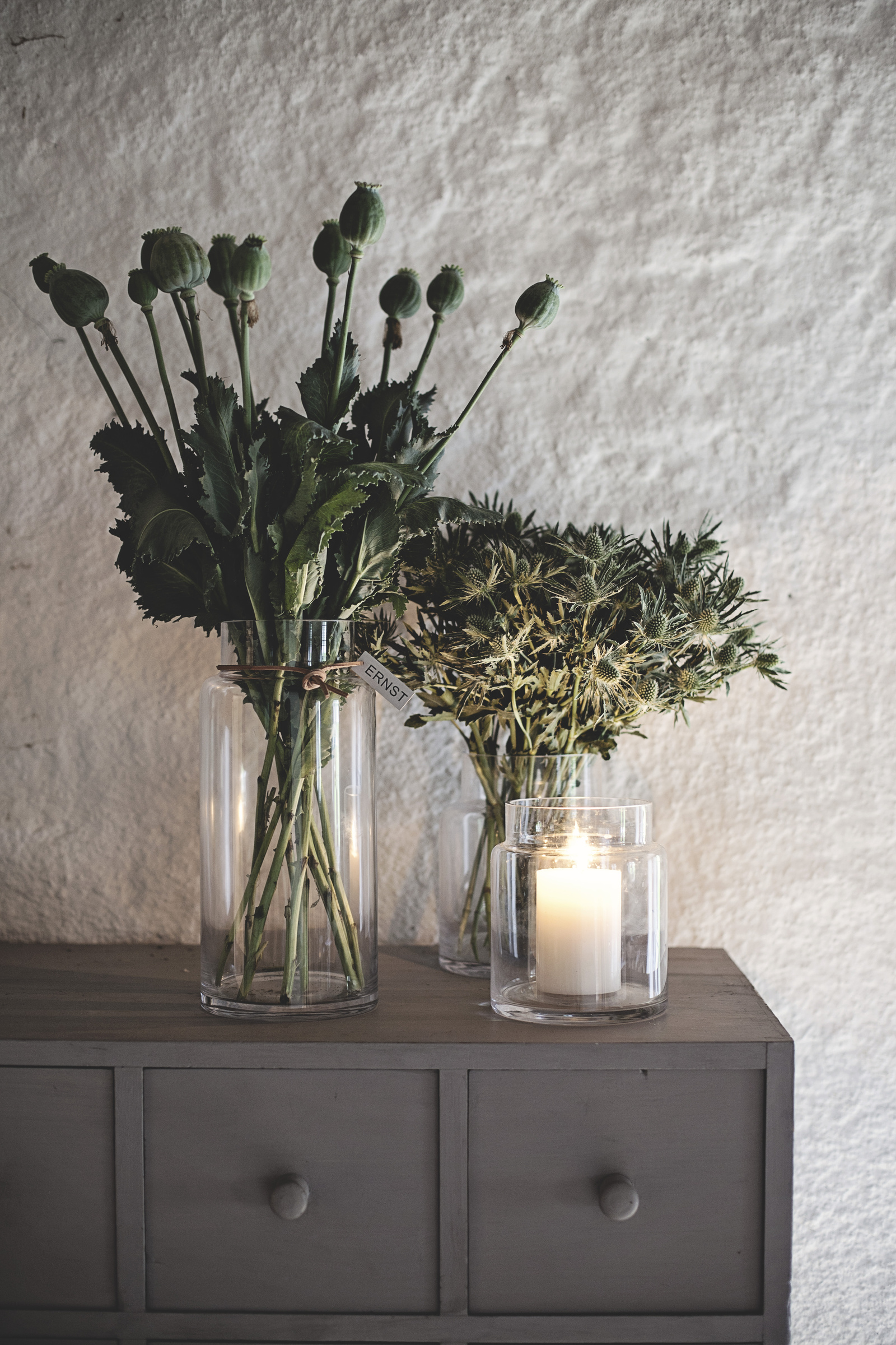 Inomhusväxter och blommor skapar liv och glädje i hemmet. I ERNST kruka/vas med läderband kan du skapa vackra blomsterarrangemang eller tända ett ljus i.