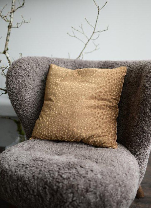 Kuddfodral med ett jacquardvävt leopardmönster är ett elegant inslag som ger inredningen en sofistikerad touch. Den vävda strukturen skapar ett diskret men livfullt djurmönster med djup och textur samtidigt som den enfärgade baksidan balanserar framsidans mönster.