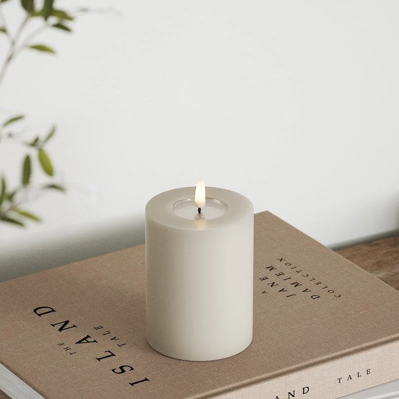Elegant LED-blockljus med verklighetstrogen 3D-låga och ett unikt “Real Stearin” utseende. Den naturliga ytan i stearin och harts skapar ett autentiskt ljus med det karakteristiska “våta” utseendet av smält stearin. Utrustat med på/av-knapp undertill och kompatibelt med fjärrkontroll (säljs separat) med timerfunktion på 2, 4, 6 eller 8 timmar. Drivs av 2 AA-batterier (ingår ej) med upp till 400 timmars brinntid. Ett säkert, sotfritt och hållbart alternativ som sprider varmt, stämningsfullt ljus i varje rum.