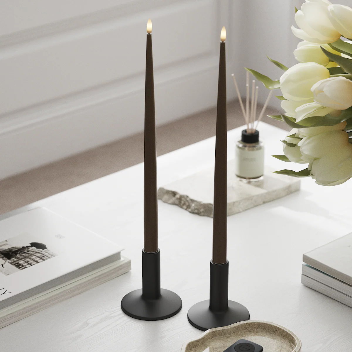 Elegant LED-ljus i lackerad karamell med verklighetstrogen 3D-låga och “Real Stearin”-yta som ger ett autentiskt, levande sken. Den blanka finishen och den unika hartsbeläggningen skapar den klassiska “våta” effekten som liknar smält stearin. Ljusen har en praktisk på/av-knapp undertill och är kompatibla med fjärrkontroll (säljs separat) med timer på 2, 4, 6 eller 8 timmar. Drivs av 2 AAA-batterier (ingår ej) med upp till 300 timmars brinntid. Ett stilfullt, säkert och sotfritt alternativ som sprider ett varmt och stämningsfullt ljus – perfekt för en elegant inredning året runt.