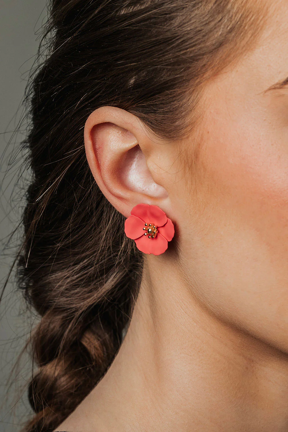 Lägg till en touch av livfull stil till din look med våra trendiga blomörhängen, tillgängliga i en rad fantastiska färger. Dessa fint tillverkade örhängen, designade i en charmig blomform, är gjorda av en blandning av järn, gummi, zinklegering och lätt stål. Perfekta för att ge en modemedveten touch till vilken outfit som helst.