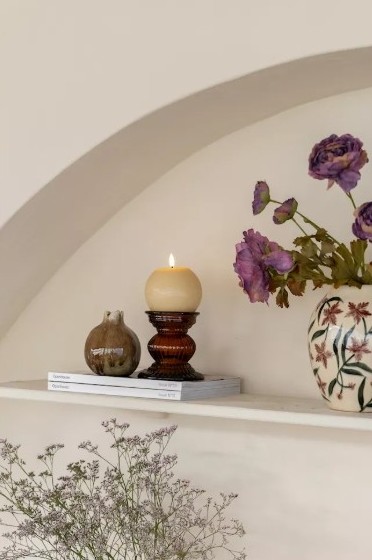 Med sin mjuka, organiska form påminner vasen om naturens former och blir en harmonisk detalj i såväl moderna som klassiska interiörer. Den smala öppningen gör den perfekt för enstaka kvistar, torkade blommor eller dekorativa grenar, men den står lika vackert som ett solitärt konstobjekt.