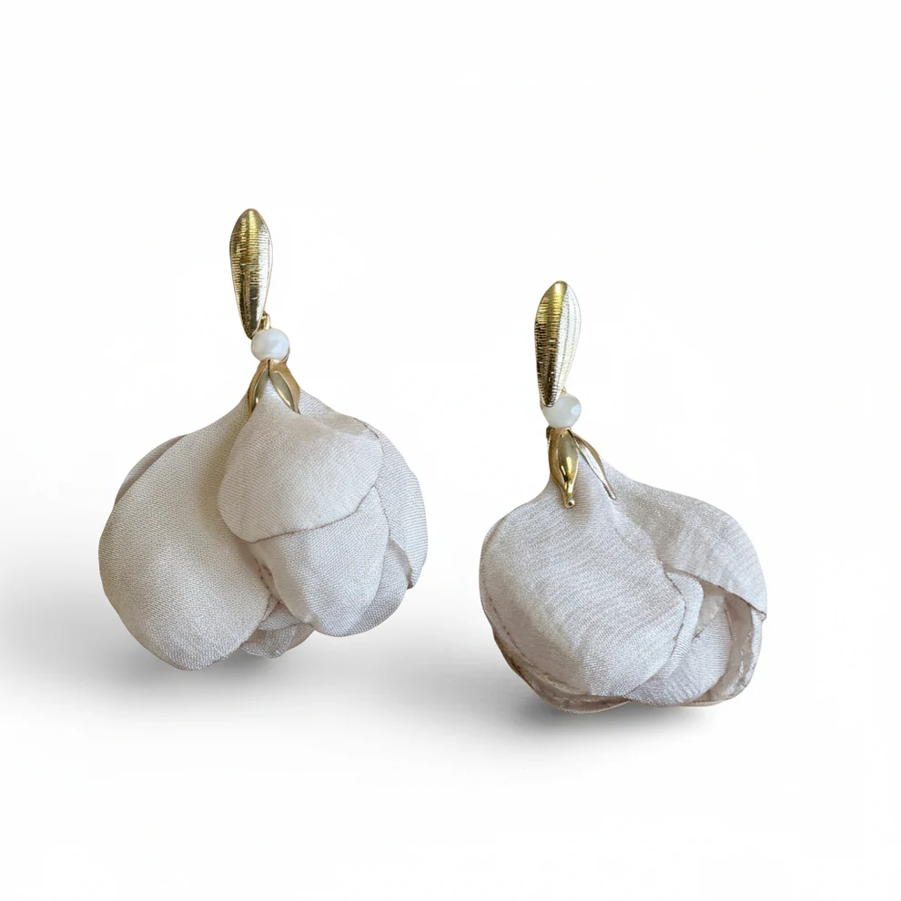 Dröm dig bort bland molnen med våra örhängen Cloud Kiss. Dessa eleganta lättviktsörhängen består av mjuk, böljande tyll som vilar i en guldpläterad hållare – en kombination som skapar både lekfullhet och sofistikerad stil. Formen påminner om en tulpans kronblad. När du bär ett par vackra örhängen bär du inte bara smycken; du bär ett uttryck för din egen unika skönhet och personlighet. Cloud Kiss är skapat för att kännas lätta som luft men ändå få ett starkt intryck.
